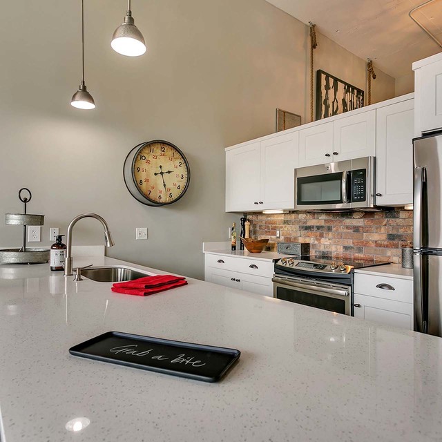 Our vintage, loft-style Mockingbird Station apartments feature vaulted ceilings and gourmet kitchens, and showcase granite or quartz countertops, brick backsplash, and stainless-steel appliances. The Loft's 24-hour courtesy patrol and emergency maintenance ensure every need is met, all while residents enjoy a stroll through our pet-friendly community spaces or appreciate the exclusive views of downtown Dallas and SMU from their private terraces.